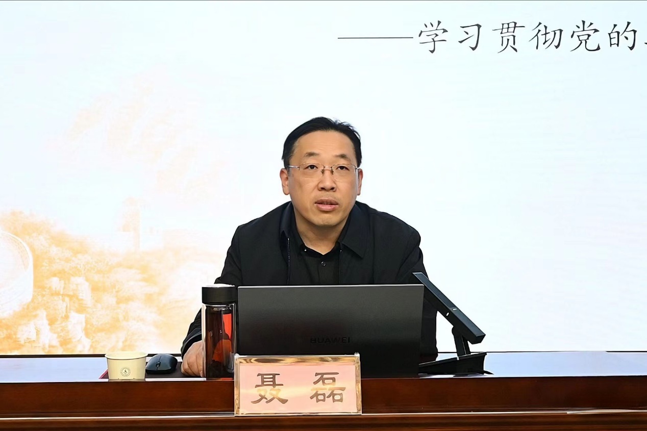 11月24日下午,我校在三楼报告厅举行学习贯彻党的二十届四中全会精神市委宣讲团宣讲报告会。徐州市委宣讲团成员、中共徐州市委党校副校长聂磊教授来校作宣讲报告。校党委理论学习中心组在徐成员,校全体党员、全体中层干部、思政课教师、辅导员、各民主党派负责人、各级人大代表、政协委员和学生代表等参加本次报告会。校党委副书记、校长张军主持报告会。